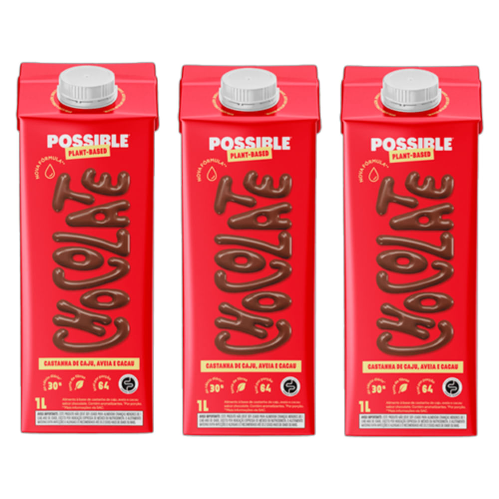 Kit 3X: Leite Vegetal de Castanha de Caju Chocolate Orgânico Possible 1L