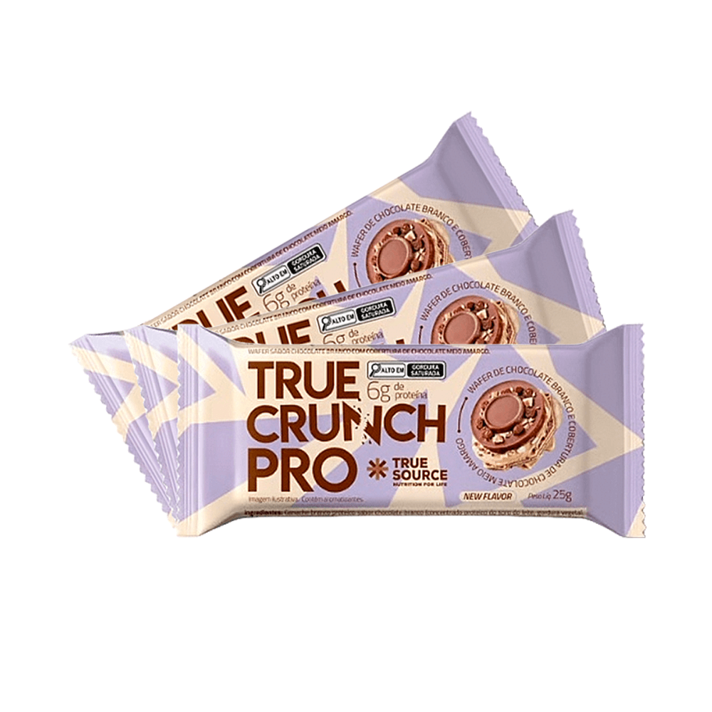 O Wafer Proteico True Crunch Pro Chocolate Meio Amargo chegou para trazer mais sabor e saúde para seus dias, possui 6g de proteína por porção, fonte de fibras e xero açúcar. Uma opção limpa e saudável._x000D_  _x000D_ O Wafer Proteico True Crunch Pro Chocolate Meio Amargo traz na sua composição, nosso blend especial de proteínas de alto valor biológico e sem lactose. É feito com ingredientes selecionados, para quem busca além de sabor, também qualidade._x000D_  _x000D_ Ingredientes: Ganache branco proteico sabor chocolate branco (concentrado proteico do soro do leite, gordura vegetal, polidextrose, soro de leite em pó, leite em pó integral, leite em pó desnatado, edulcorante maltitol, aromatizante e emulsificante lecitina de soja), cobertura sabor chocolate meio amargo, wafer (farinha de trigo enriquecida com ferro e ácido fólico, gordura vegetal, fermento bicarbonato de sódio e emulsificante lecitina de soja)._x000D_ ALÉRGICOS: CONTÉM LEITE, TRIGO E SOJA. PODE CONTER CASTANHA DE CAJU, CASTANHA DO PARÁ, AMÊNDOAS, AMENDOIM, AVEIA, NOZES E PECÃS. _x000D_  _x000D_ Sobre a marca: Nascemos da união de um time de especialistas de peso que formularam produtos altamente eficientes e saborosos. Depois de 2 anos de pesquisas e estudos do mercado nacional e internacional, nossos médicos, nutricionistas e chefs de cozinha chegaram à fórmula perfeita._x000D_  _x000D_ Sobre a Boomi: A Boomi é  um mercado online com produtos saudáveis e sustentáveis, que fazem bem à saúde e ao planeta. São mais de 3.500 produtos de 150 pequenas marcas para você!_x000D_ Nascemos pequenos, mas com um propósito gigante: conectar pessoas a produtos acessíveis que tragam benefícios para a saúde, para o planeta e para a sociedade. Para isso, buscamos ofertar produtos de pequenos agricultores e pequenas empresas em um mundo cada vez mais veloz e que busca mais produtividade. Vamos sempre buscar levar o melhor para você!_x000D_ Nosso propósito é conectar alimentos saudáveis e produtos naturais e sustentáveis a pessoas preocupadas com a sua saúde e com a saúde do planeta. Com preço justo, comodidade e informações confiáveis._x000D_ Curadoria: Nossos produtos são criteriosamente validados pela nossa curadoria de produtos saudáveis, que busca produtores e empresas que compartilham do nosso alto padrão de qualidade. Da enorme lista de ingredientes banidos à preocupação do bem estar animal, desde o primeiro dia seguimos fieis aos nossos valores, trabalhando com transparência e práticas sustentáveis. Vendemos apenas produtos que admiramos e que nos orgulha.