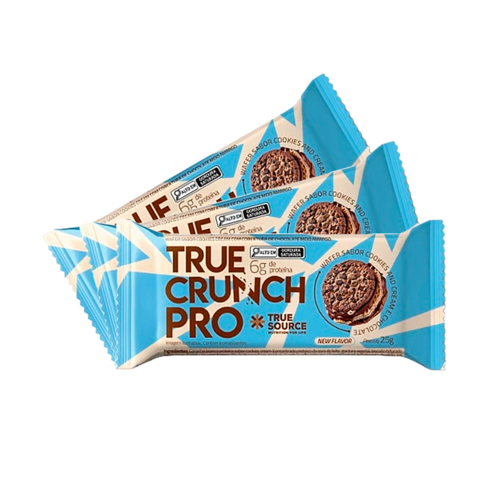 O Wafer Proteico True Crunch Pro Cookies And Cream chegou para trazer mais sabor e saúde para seus dias, possui 6g de proteína por porção, fonte de fibras e xero açúcar. Uma opção limpa e saudável._x000D_  _x000D_ O Wafer Proteico True Crunch Pro Cookies And Cream traz na sua composição, nosso blend especial de proteínas de alto valor biológico e sem lactose. É feito com ingredientes selecionados, para quem busca além de sabor, também qualidade._x000D_  _x000D_ Ingredientes: Ganache branco proteico sabor ccookies and cream (concentrado proteico do soro do leite, gordura vegetal), biscoito triturado sabor cacau (farinha de arroz branco, fécula de mandioca, gordura de palma, alfarroba em pó, cacau em pó, bicarbonato de sódio, sal hipossódico, aromatizantes e edulcorante sucralose), polidextrose, soro de leite em pó, leite em pó integral, leite em pó desnatado, edulcorante maltitol e emulsificante lecitina de soja, cobertura sabor chocolate meio amargo, wafer (farinha de trigo enriquecida com ferro e ácido fólico, gordura vegetal, fermento bicarbonato de sódio e emulsificante lecitina de soja). CONTÉM GLÚTEN._x000D_ ALÉRGICOS: CONTÉM LEITE E DERIVADOS DE TRIGO E SOJA. PODE CONTER CASTANHA DE CAJU, CASTANHA DO PARÁ, AMÊNDOAS, AMENDOIM, AVEIA, NOZES E PECÃS. CONTÉM LACTOSE. _x000D_  _x000D_ Sobre a marca: Nascemos da união de um time de especialistas de peso que formularam produtos altamente eficientes e saborosos. Depois de 2 anos de pesquisas e estudos do mercado nacional e internacional, nossos médicos, nutricionistas e chefs de cozinha chegaram à fórmula perfeita._x000D_  _x000D_ Sobre a Boomi: A Boomi é  um mercado online com produtos saudáveis e sustentáveis, que fazem bem à saúde e ao planeta. São mais de 3.500 produtos de 150 pequenas marcas para você!_x000D_ Nascemos pequenos, mas com um propósito gigante: conectar pessoas a produtos acessíveis que tragam benefícios para a saúde, para o planeta e para a sociedade. Para isso, buscamos ofertar produtos de pequenos agricultores e pequenas empresas em um mundo cada vez mais veloz e que busca mais produtividade. Vamos sempre buscar levar o melhor para você!_x000D_ Nosso propósito é conectar alimentos saudáveis e produtos naturais e sustentáveis a pessoas preocupadas com a sua saúde e com a saúde do planeta. Com preço justo, comodidade e informações confiáveis._x000D_ Curadoria: Nossos produtos são criteriosamente validados pela nossa curadoria de produtos saudáveis, que busca produtores e empresas que compartilham do nosso alto padrão de qualidade. Da enorme lista de ingredientes banidos à preocupação do bem estar animal, desde o primeiro dia seguimos fieis aos nossos valores, trabalhando com transparência e práticas sustentáveis. Vendemos apenas produtos que admiramos e que nos orgulha.