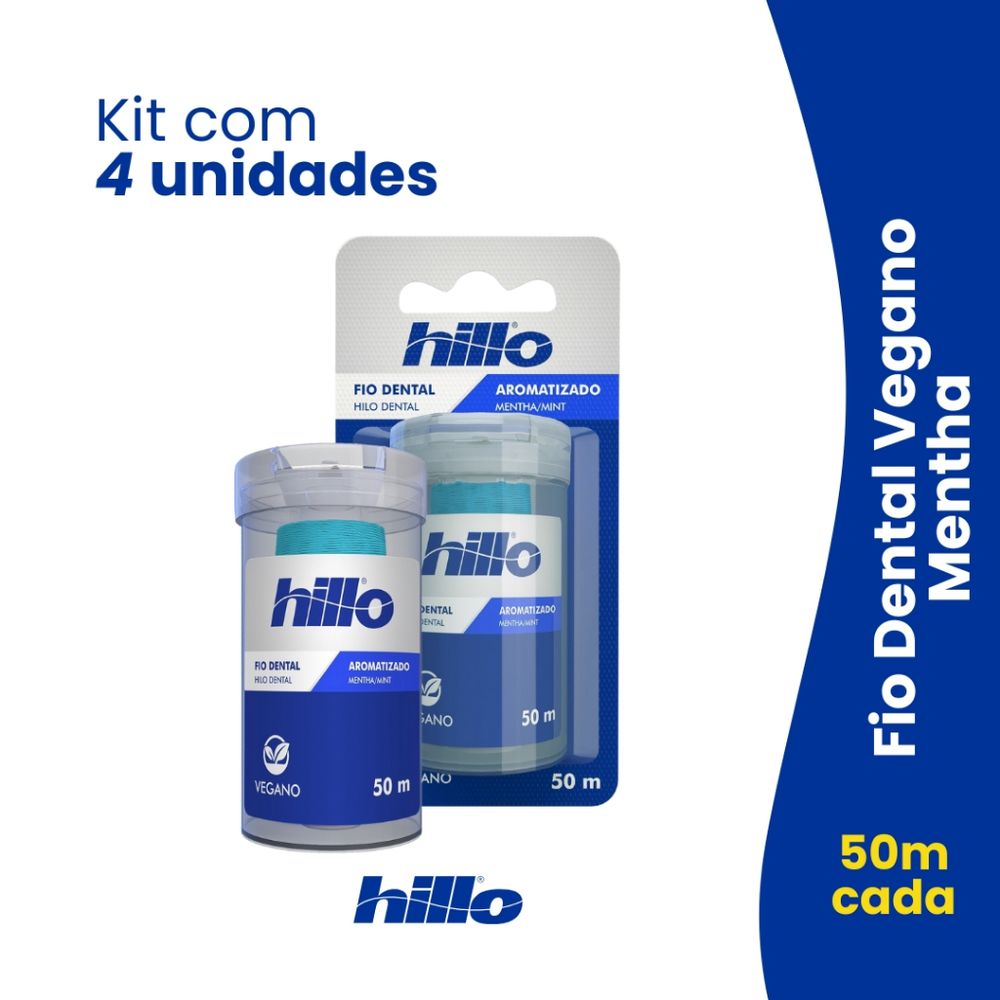 Kit 4 Fios Dentais Menta Vegano 50 Metros Hillo Econômico Refrescância e Sustentabilidade
