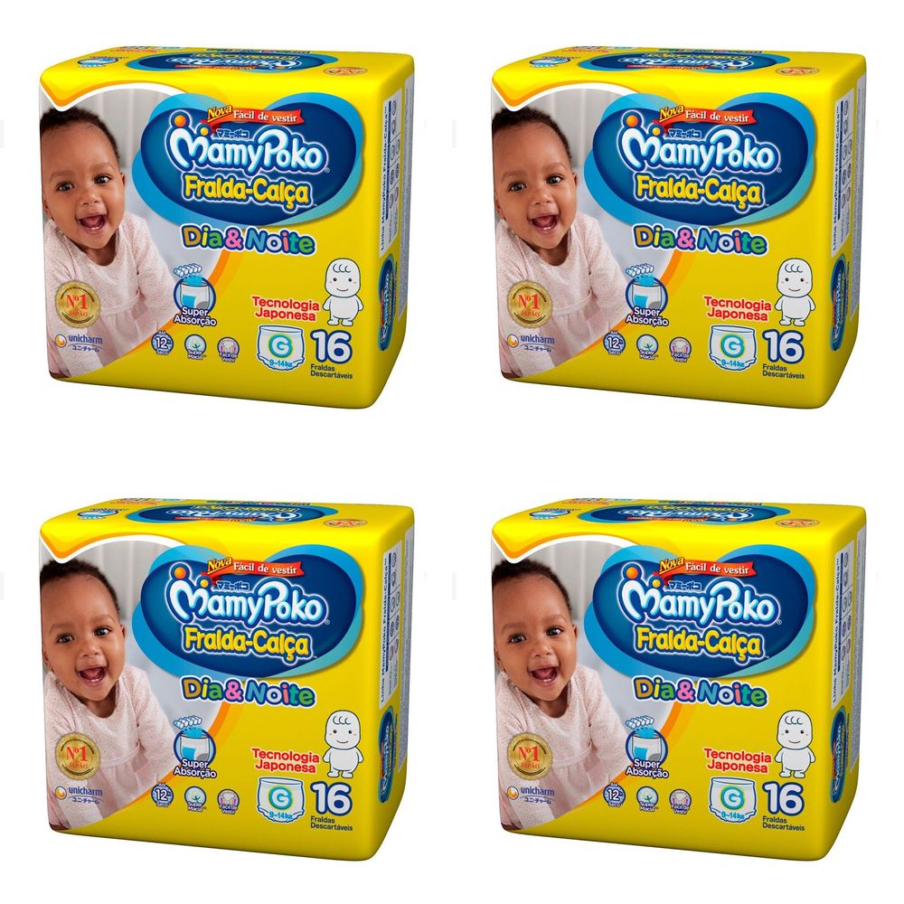 Kit 4 Fraldas Calça MamyPoko Dia e Noite Tamanho "G" com 16 Unidades cada