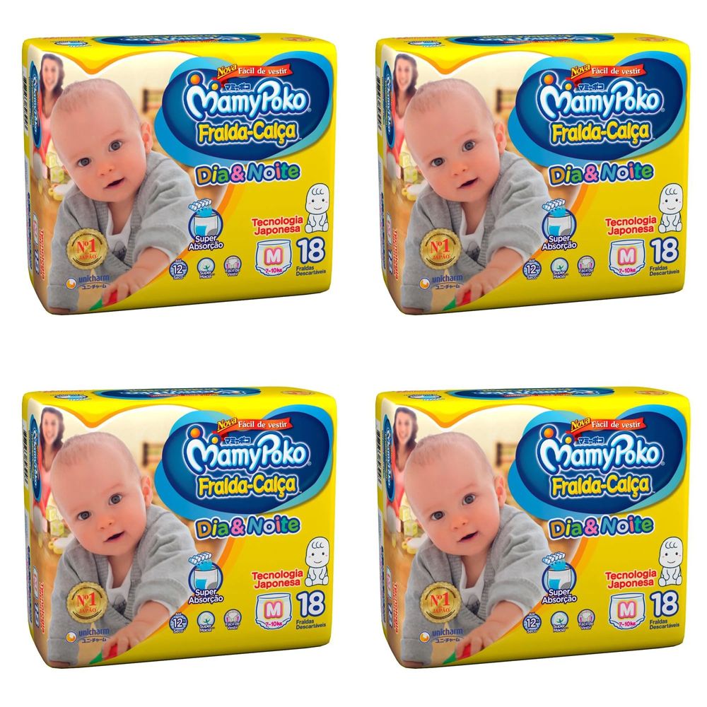 Kit 4 Fraldas Calca Mamypoko Dia e Noite Tamanho Médio 18 Unidades cada