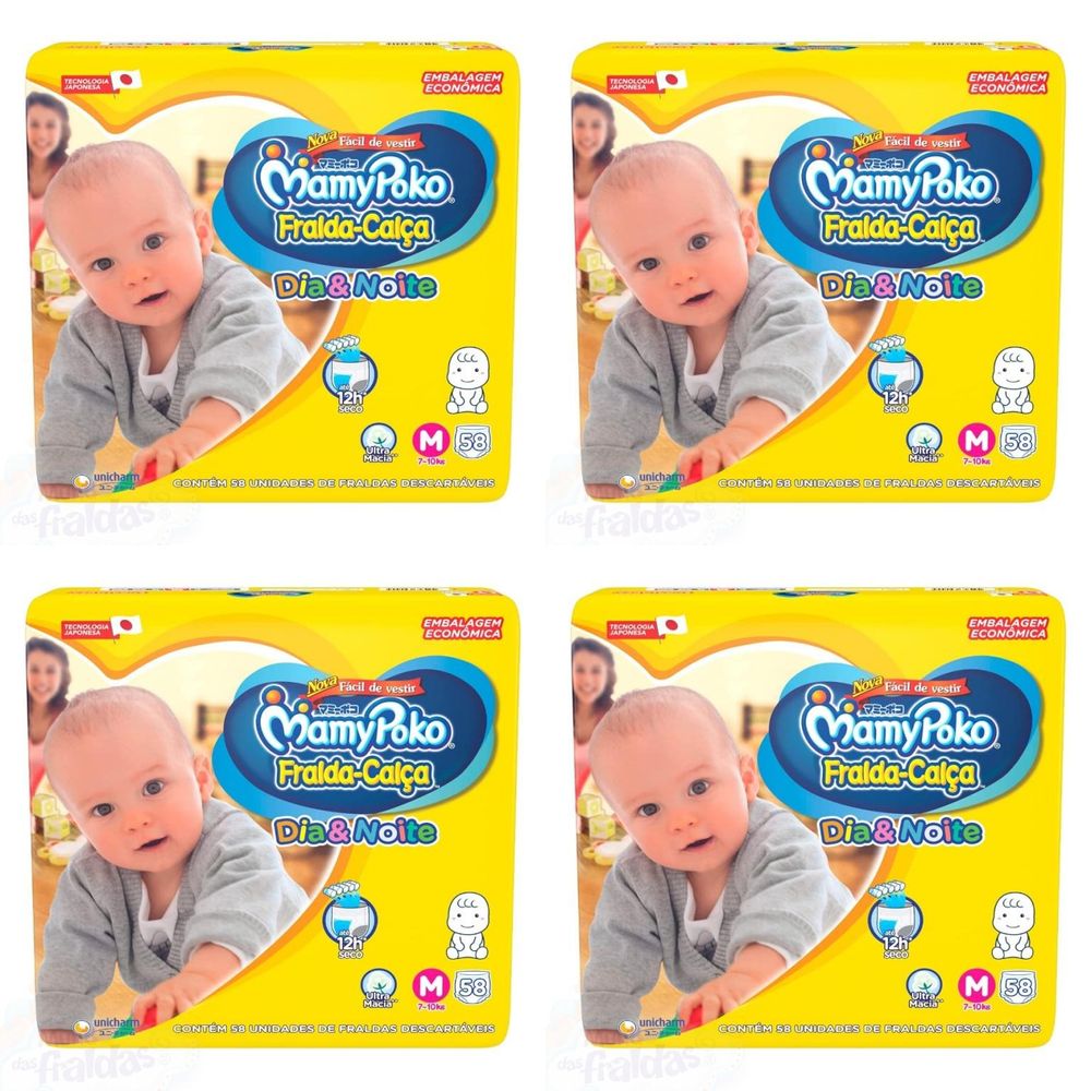 Kit 4 Fraldas-Calça Mamypoko Dia&Noite Roupinha "M" c/58 Unidades cada