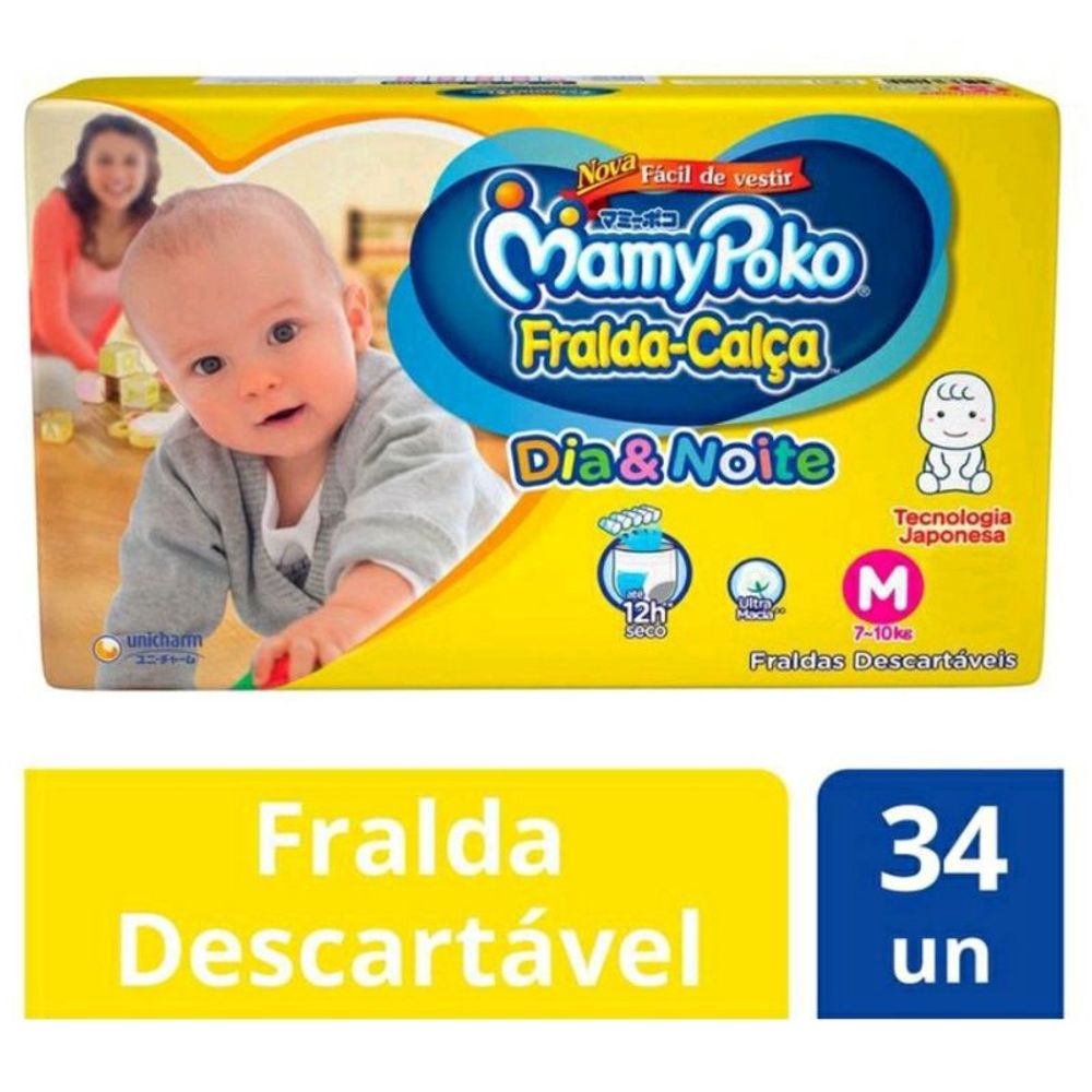 Kit 4 Fraldas Calça MamyPoko M - 7 a 10kg com 34 Unidades cada mamy poko Dia & Noite Jumbo
