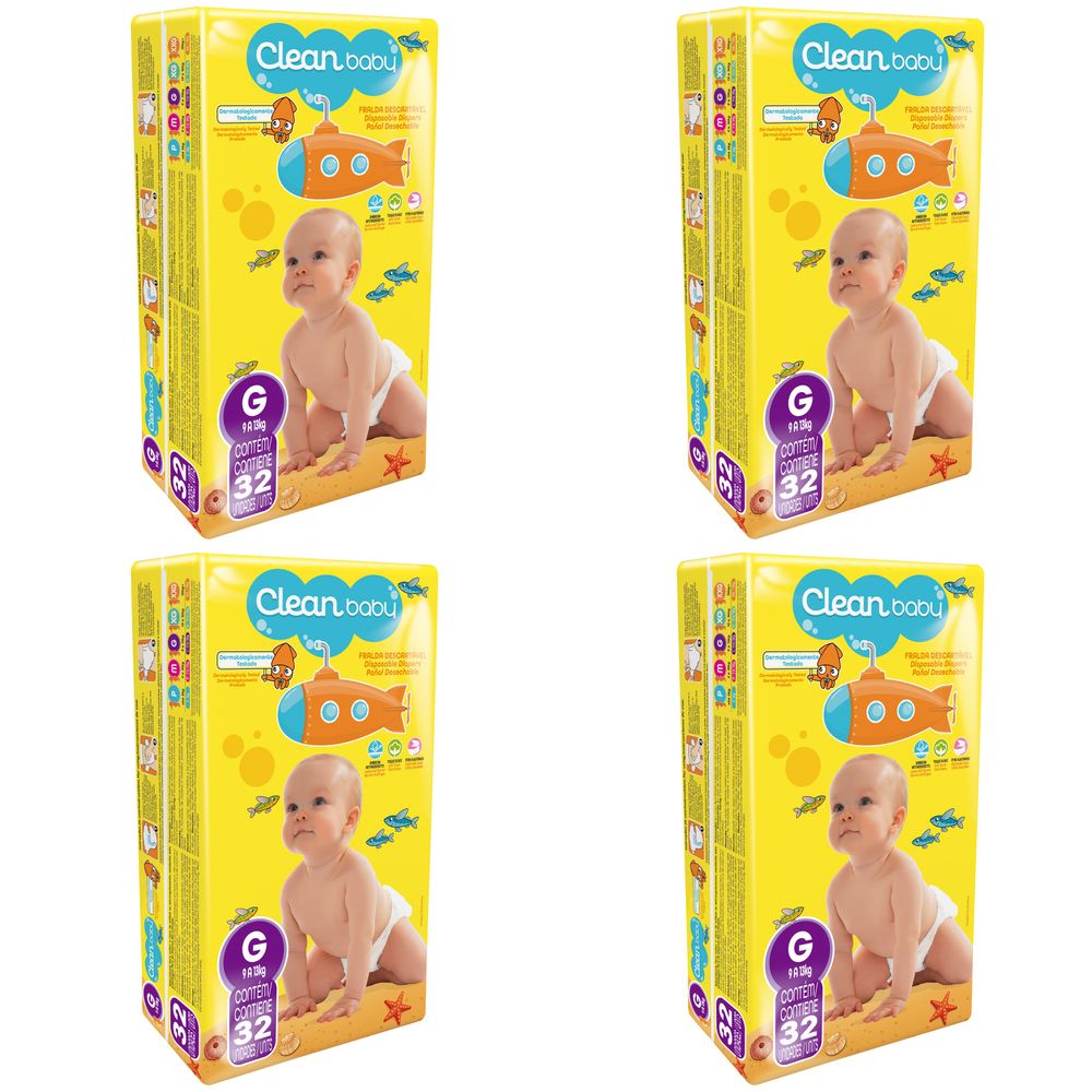 Kit 4 Fraldas Clean Baby Jumbo G c/32 Unidades cada