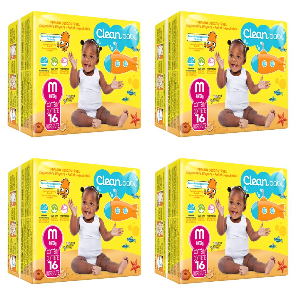 Kit 4 Fraldas Clean Baby M c/16 Unidades