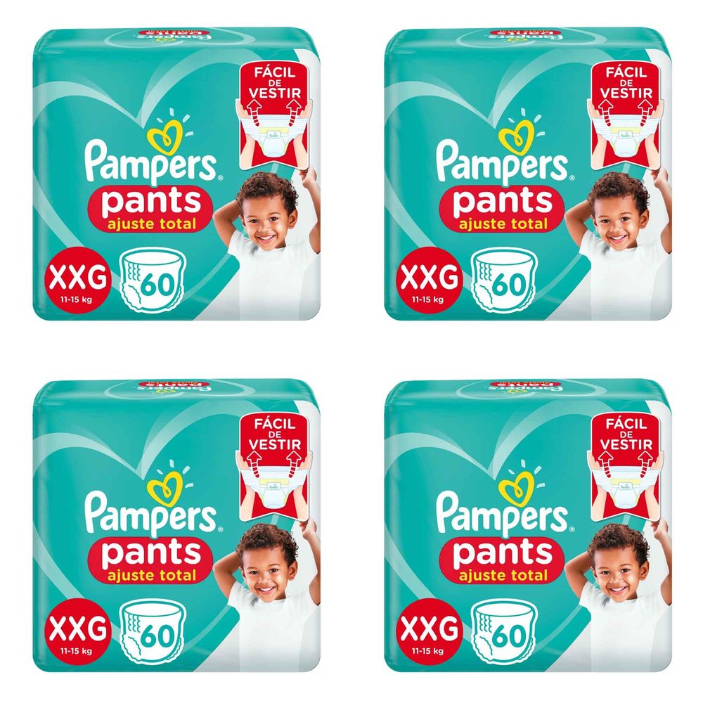 Kit 4 Fraldas Confortsec Pants Bag ”Xxg” Pampers Simples c/ 60 Unidades cada