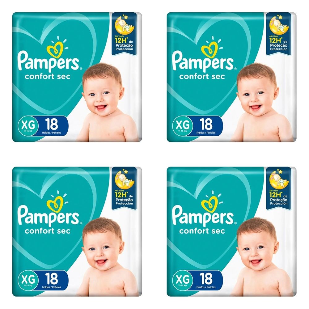 Kit 4 Fraldas Confortsec ”Xg” Pampers Simples c/ 18 Unidades cada