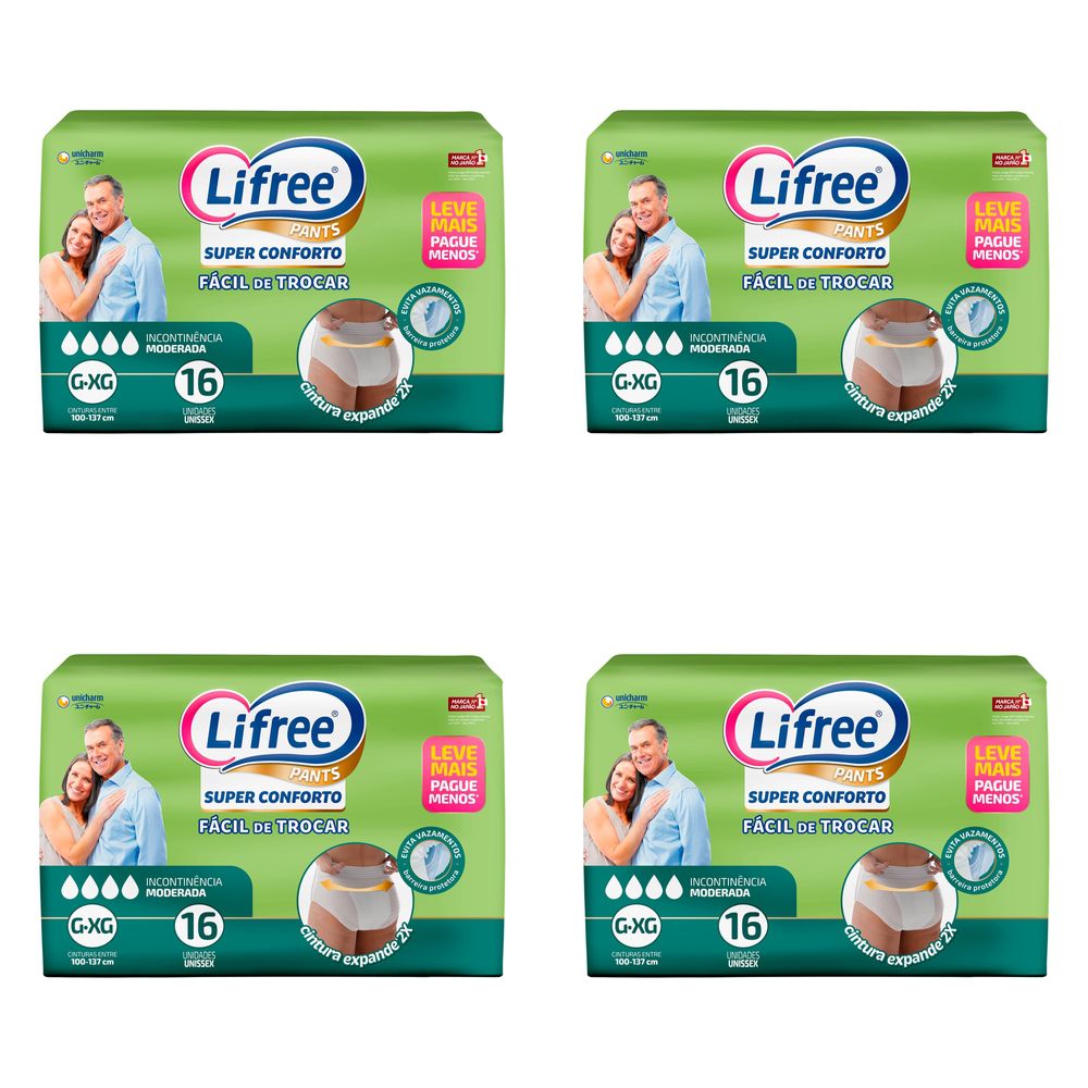 Kit 4 Fraldas Geriatrica Lifree Super Confort [G/Xg] c/16 Unidades cada