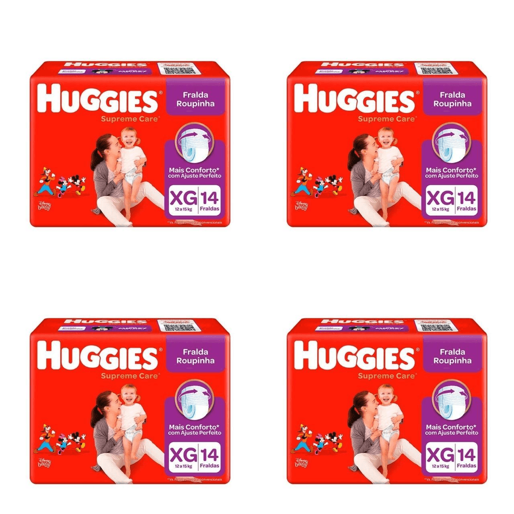 Kit 4 Fraldas Huggies Roupinha Supreme Care Jumbo Xg c/14 Unidades cada