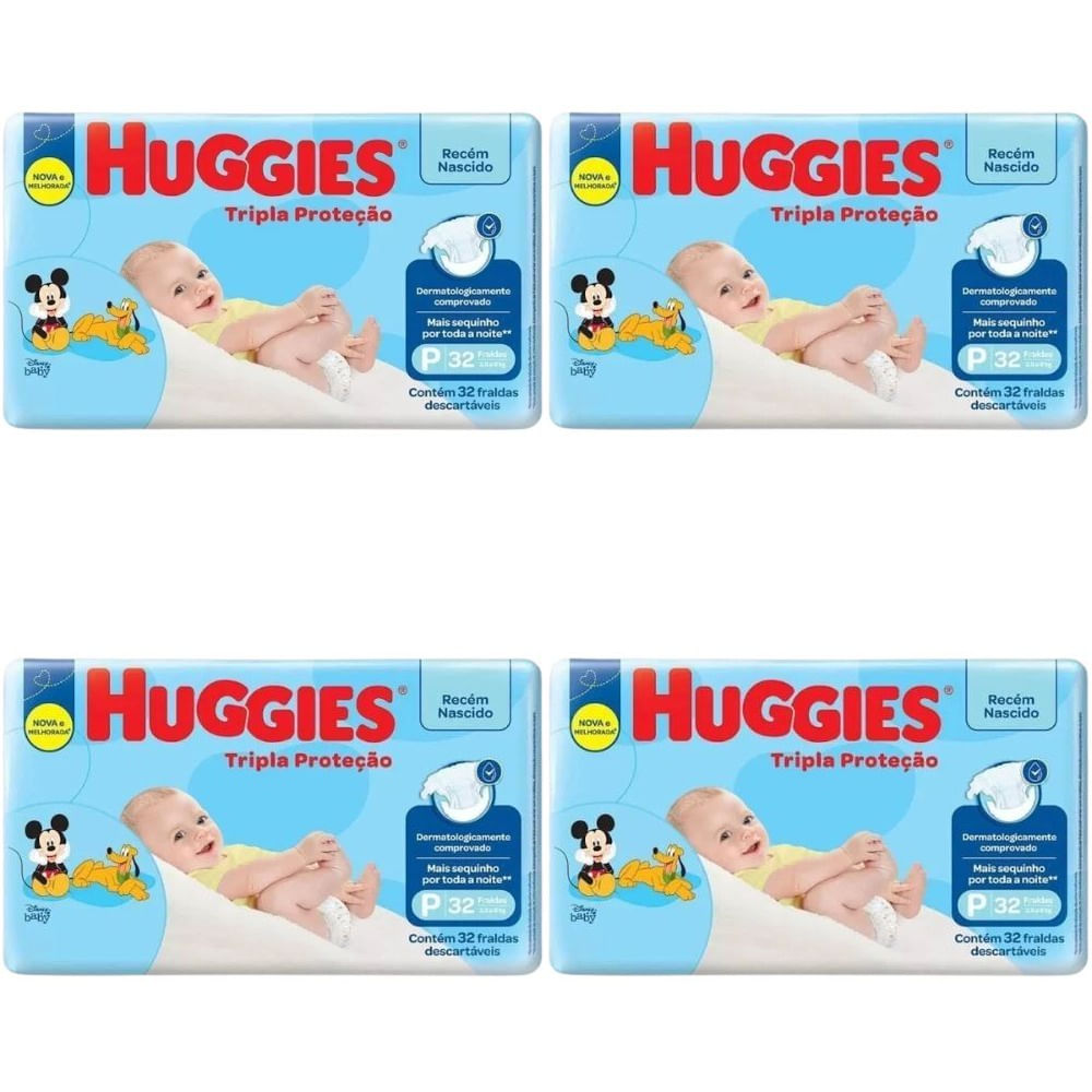 Kit 4 Fraldas Huggies Tripla Proteção Jumbo (P) 32 Unidades cada