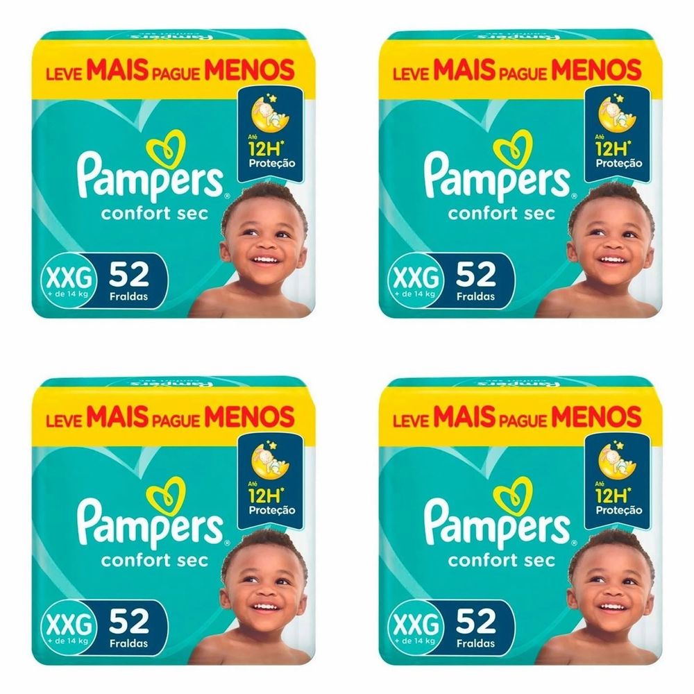 Kit 4 Fraldas Pampers Confort Sec Xxg 52 Unidades cada
