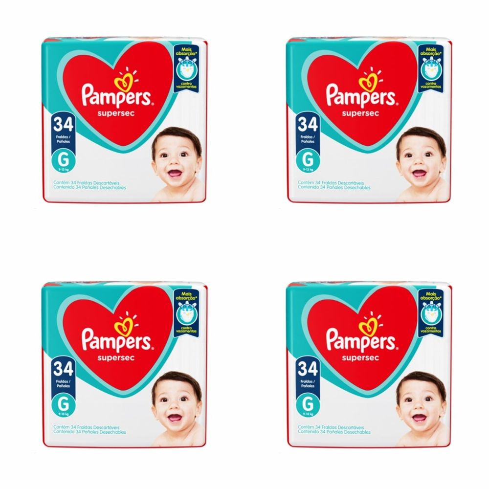 Kit 4 Fraldas Pampers Ss G 34 Unidades cada