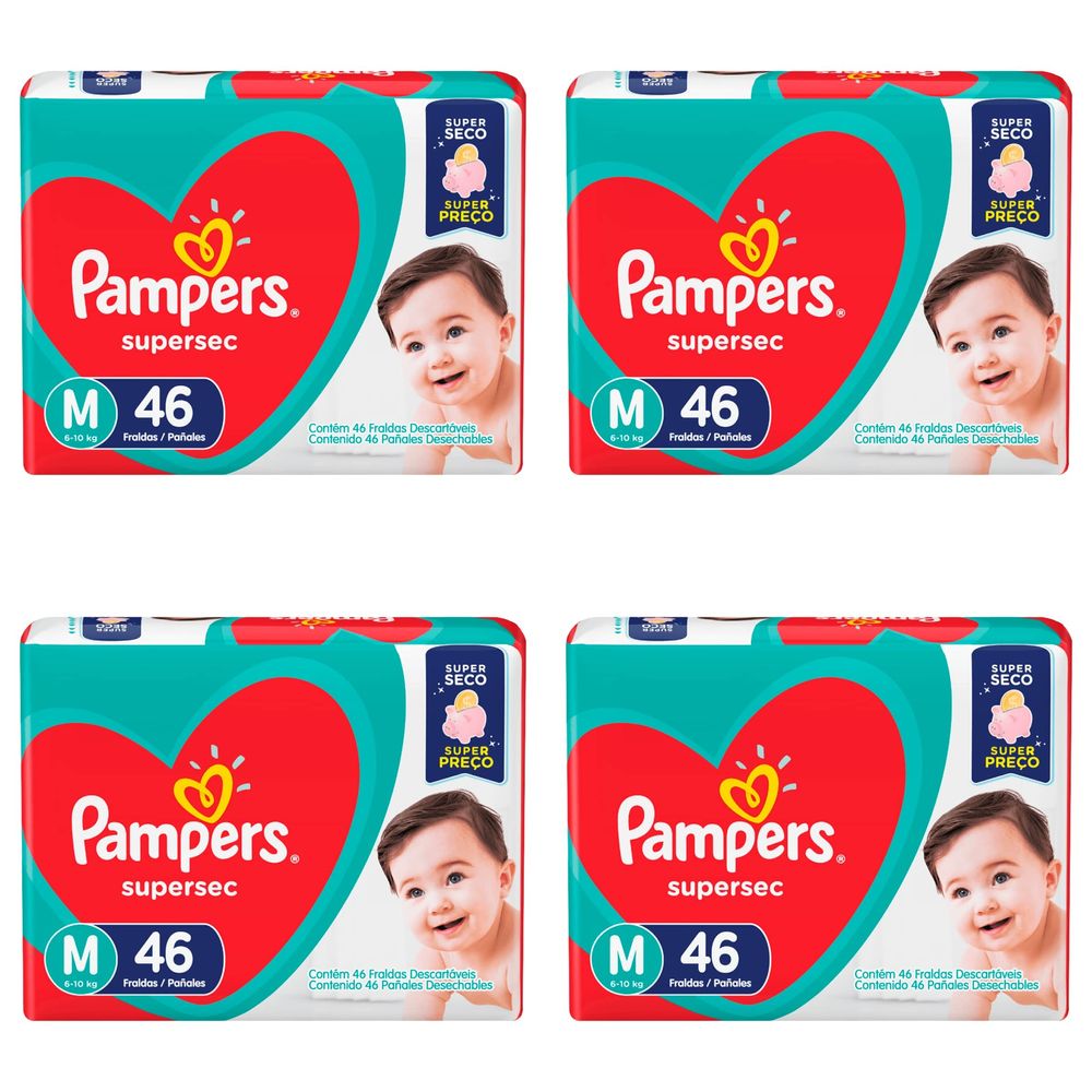 Kit 4 Fraldas Pampers Super Sec M c/ 46 Unidades cada