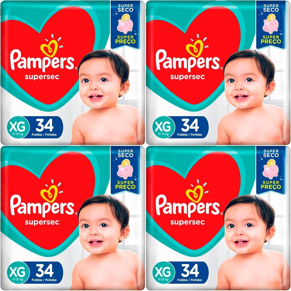 Kit 4 Fraldas Pampers Super Sec Xg Com 34 Unidades cada
