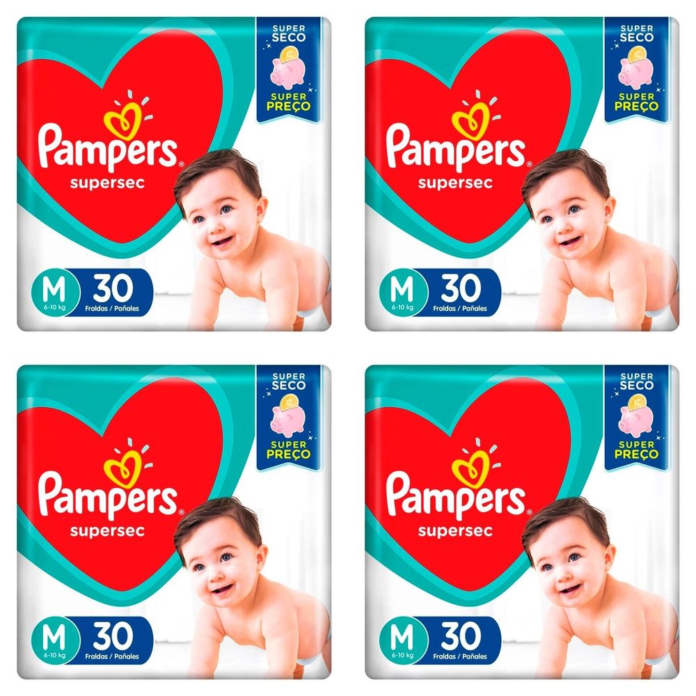 Kit 4 Fraldas Pampers Supersec Pacotão M 30 Unidades cada