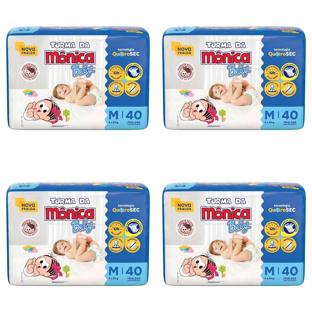 Kit 4 Fraldas Turma da Mônica Econômica M com 40 Unidades cada