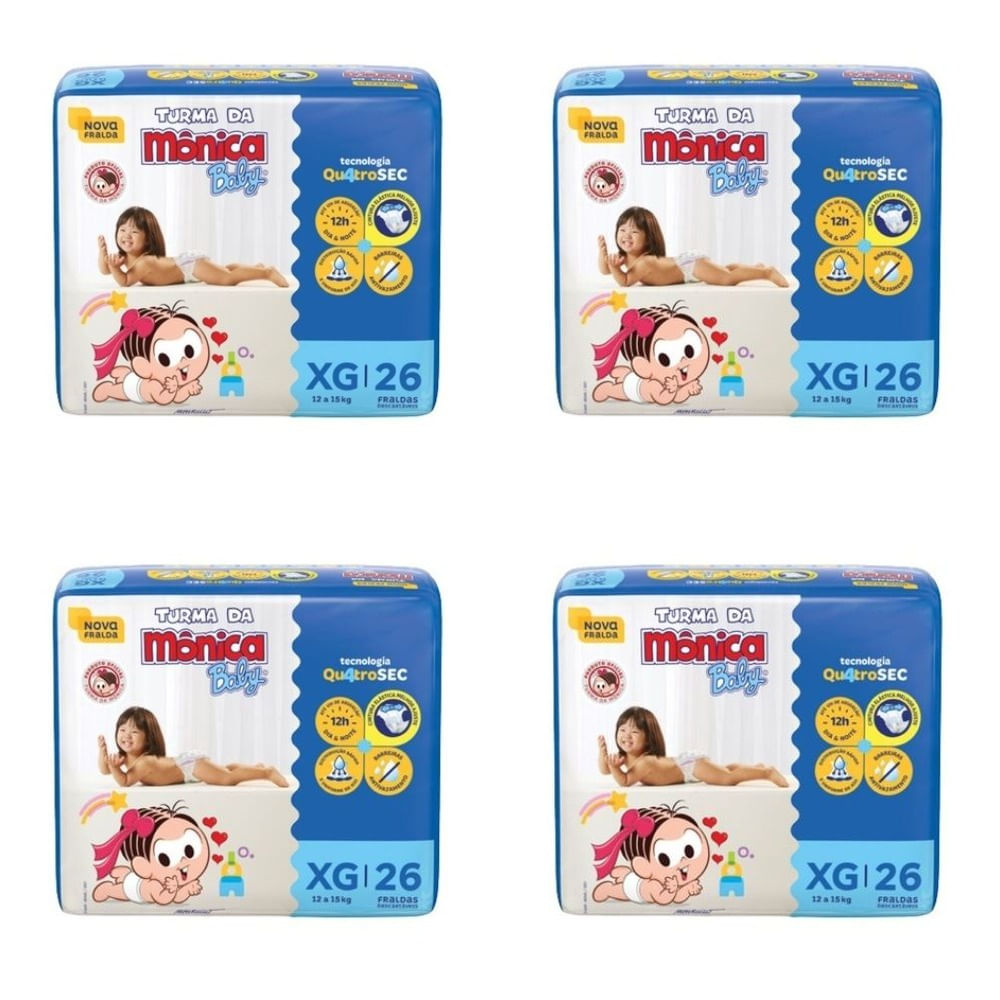 Kit 4 Fraldas Turma da Mônica Econômica XG com 26 Unidades cada