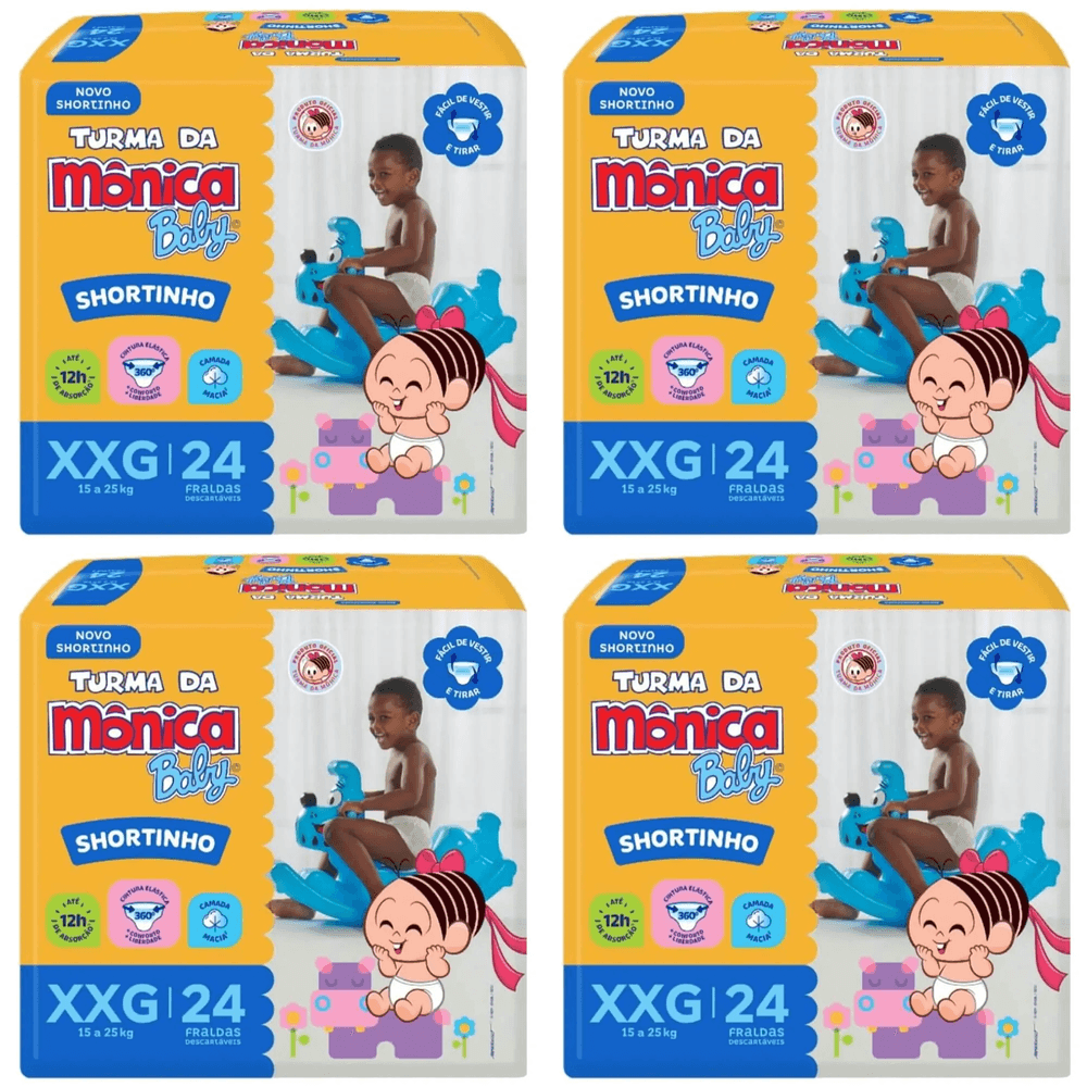 Kit 4 Fraldas Turma da Mônica Short Jumbo Tamanho XXG com 24 Unidades cada