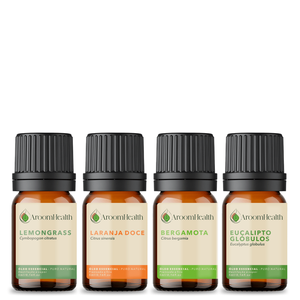 Kit 4 óleos essenciais – Laranja Doce, Bergamota, Lemongrass e Eucalipto Globulus - 5 ml cada