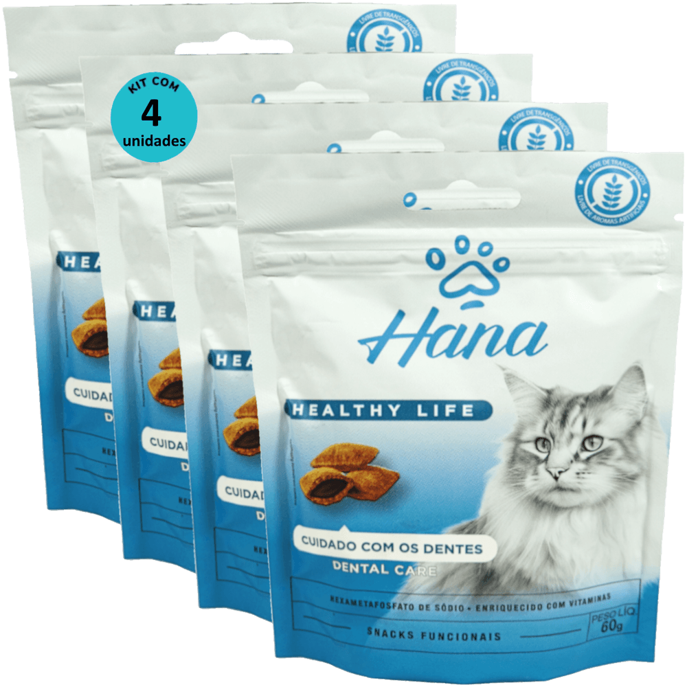 Kit 4 Snacks Hana Healthy Life Dental Care P/ Gatos Adultos- 60g