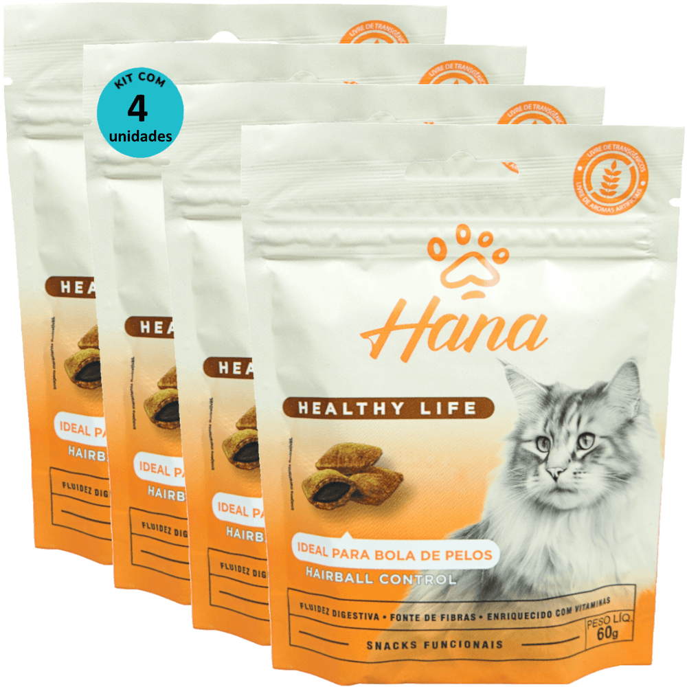 kit 4 Snacks Hana Healthy Life Hairball Control P/ Gatos Adultos- 60g