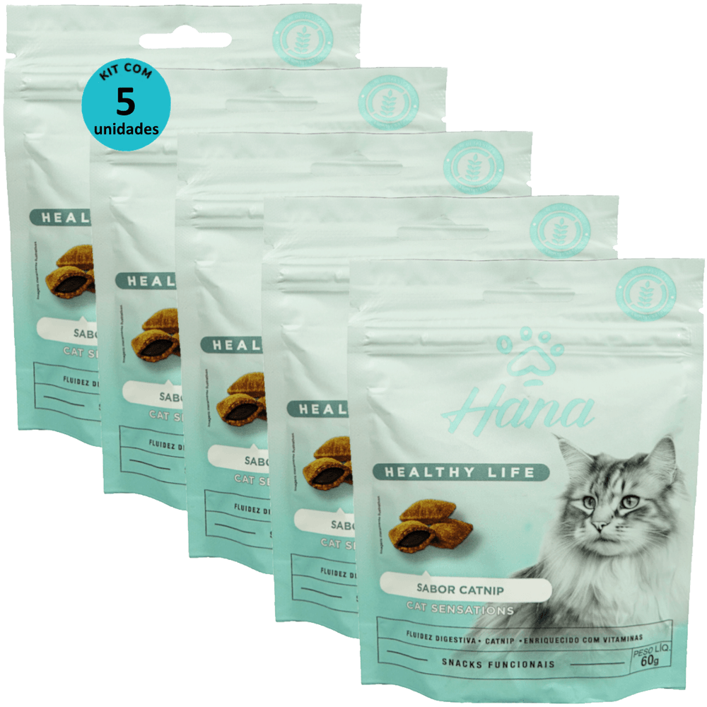 Kit 5 Snacks Hana Healthy Life Cat Sensations P/ Gatos Adultos- 60g