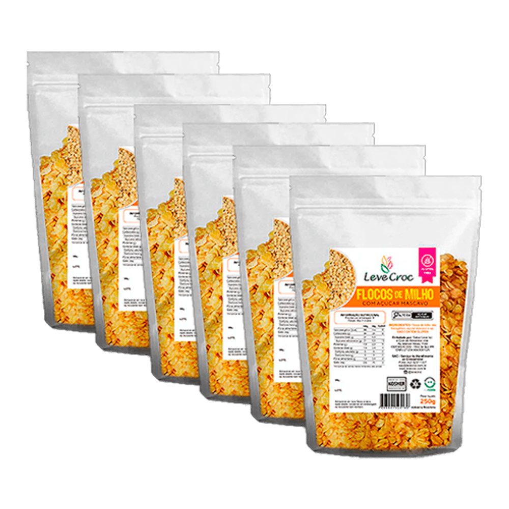 Kit 6X: Flocos de Milho com Açúcar Mascavo Sem Glúten Leve Croc 250g