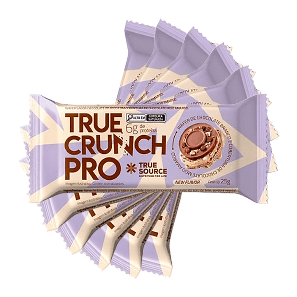 O Wafer Proteico True Crunch Pro Chocolate Meio Amargo chegou para trazer mais sabor e saúde para seus dias, possui 6g de proteína por porção, fonte de fibras e xero açúcar. Uma opção limpa e saudável._x000D_  _x000D_ O Wafer Proteico True Crunch Pro Chocolate Meio Amargo traz na sua composição, nosso blend especial de proteínas de alto valor biológico e sem lactose. É feito com ingredientes selecionados, para quem busca além de sabor, também qualidade._x000D_  _x000D_ Ingredientes: Ganache branco proteico sabor chocolate branco (concentrado proteico do soro do leite, gordura vegetal, polidextrose, soro de leite em pó, leite em pó integral, leite em pó desnatado, edulcorante maltitol, aromatizante e emulsificante lecitina de soja), cobertura sabor chocolate meio amargo, wafer (farinha de trigo enriquecida com ferro e ácido fólico, gordura vegetal, fermento bicarbonato de sódio e emulsificante lecitina de soja)._x000D_ ALÉRGICOS: CONTÉM LEITE, TRIGO E SOJA. PODE CONTER CASTANHA DE CAJU, CASTANHA DO PARÁ, AMÊNDOAS, AMENDOIM, AVEIA, NOZES E PECÃS. _x000D_  _x000D_ Sobre a marca: Nascemos da união de um time de especialistas de peso que formularam produtos altamente eficientes e saborosos. Depois de 2 anos de pesquisas e estudos do mercado nacional e internacional, nossos médicos, nutricionistas e chefs de cozinha chegaram à fórmula perfeita._x000D_  _x000D_ Sobre a Boomi: A Boomi é  um mercado online com produtos saudáveis e sustentáveis, que fazem bem à saúde e ao planeta. São mais de 3.500 produtos de 150 pequenas marcas para você!_x000D_ Nascemos pequenos, mas com um propósito gigante: conectar pessoas a produtos acessíveis que tragam benefícios para a saúde, para o planeta e para a sociedade. Para isso, buscamos ofertar produtos de pequenos agricultores e pequenas empresas em um mundo cada vez mais veloz e que busca mais produtividade. Vamos sempre buscar levar o melhor para você!_x000D_ Nosso propósito é conectar alimentos saudáveis e produtos naturais e sustentáveis a pessoas preocupadas com a sua saúde e com a saúde do planeta. Com preço justo, comodidade e informações confiáveis._x000D_ Curadoria: Nossos produtos são criteriosamente validados pela nossa curadoria de produtos saudáveis, que busca produtores e empresas que compartilham do nosso alto padrão de qualidade. Da enorme lista de ingredientes banidos à preocupação do bem estar animal, desde o primeiro dia seguimos fieis aos nossos valores, trabalhando com transparência e práticas sustentáveis. Vendemos apenas produtos que admiramos e que nos orgulha.