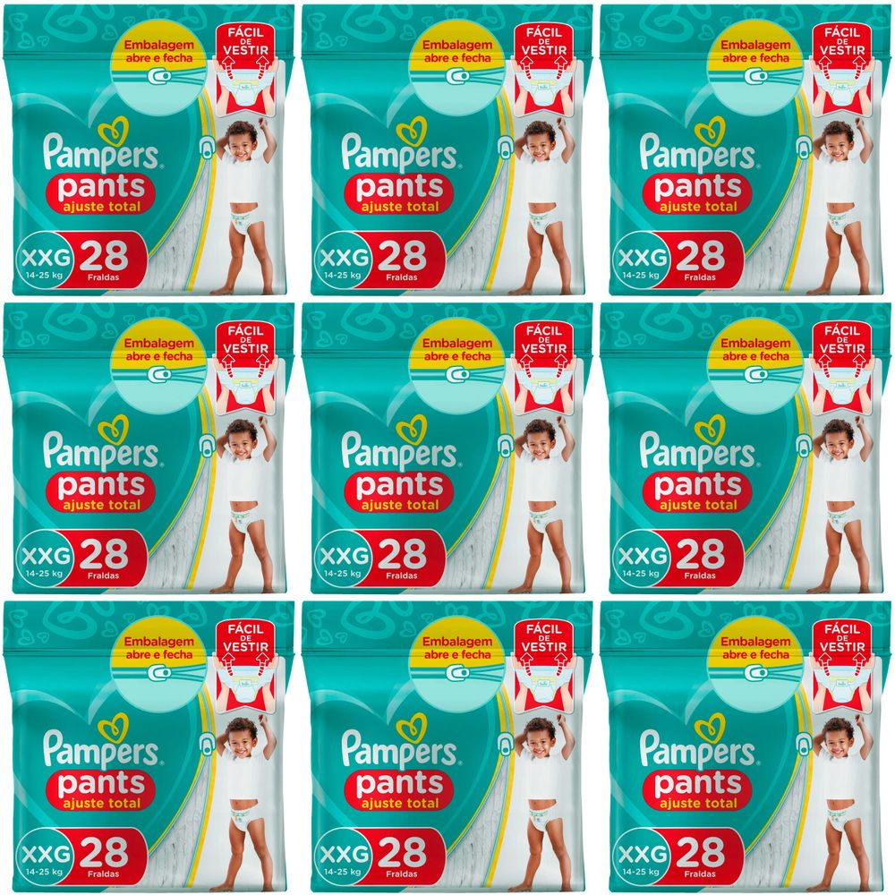 Kit 9 Fraldas Confortsec Pants ”Xxg” Pampers Simples c/28 Unidades cada