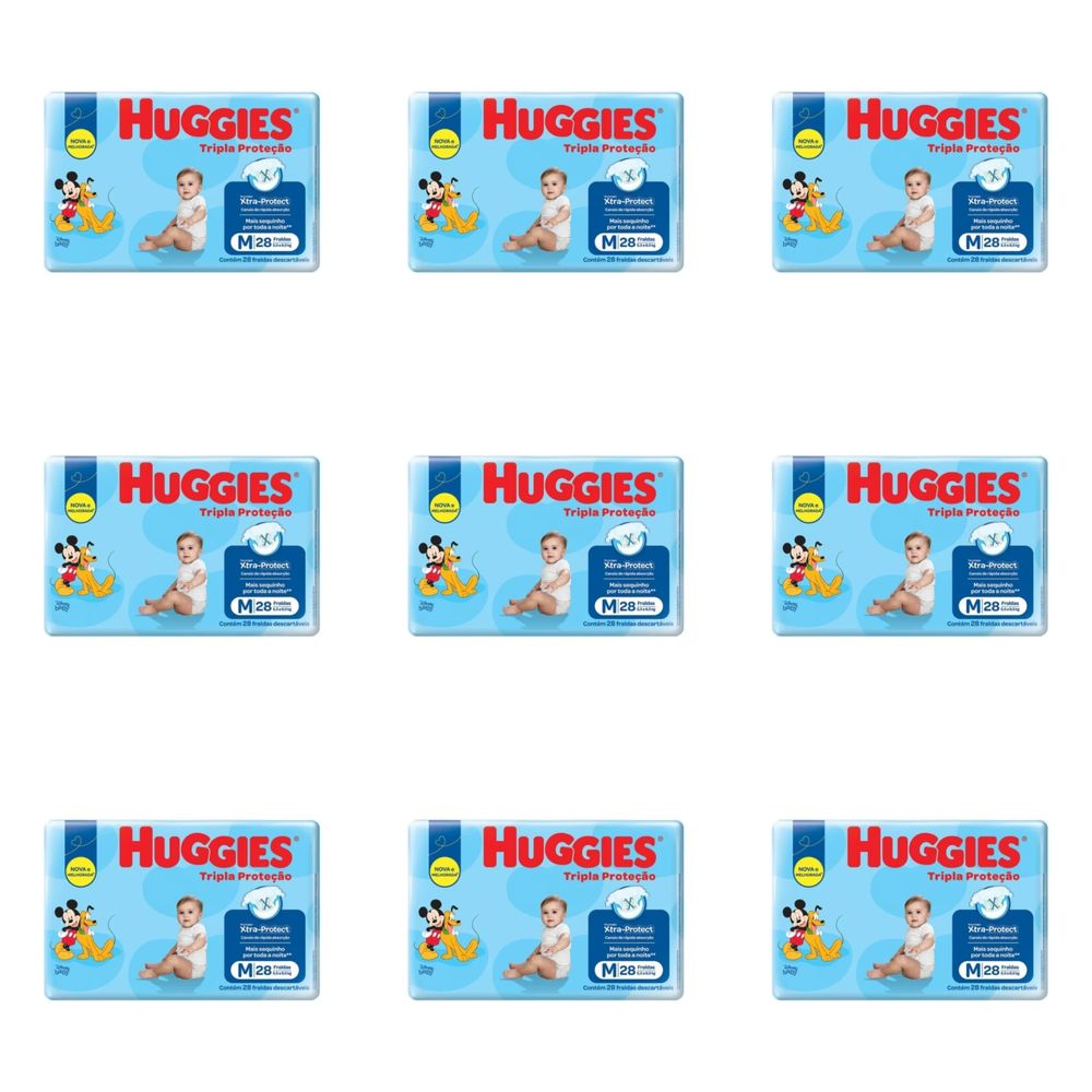 Kit 9 Fraldas Huggies Tripla Proteção (M) c/28 Unidades cada