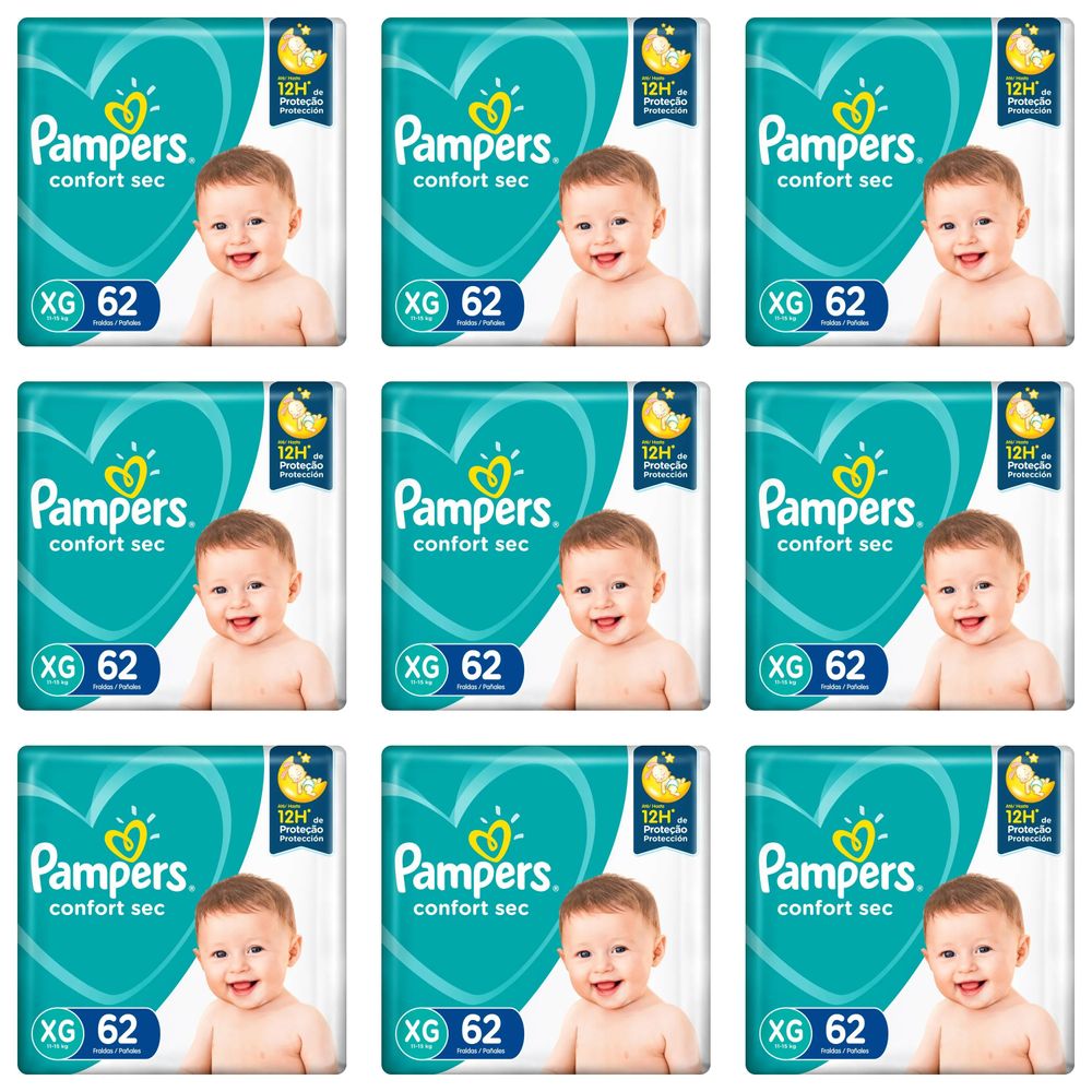 Kit 9 Fraldas Pampers Confort Sec Plus XG com 62 unidades cada