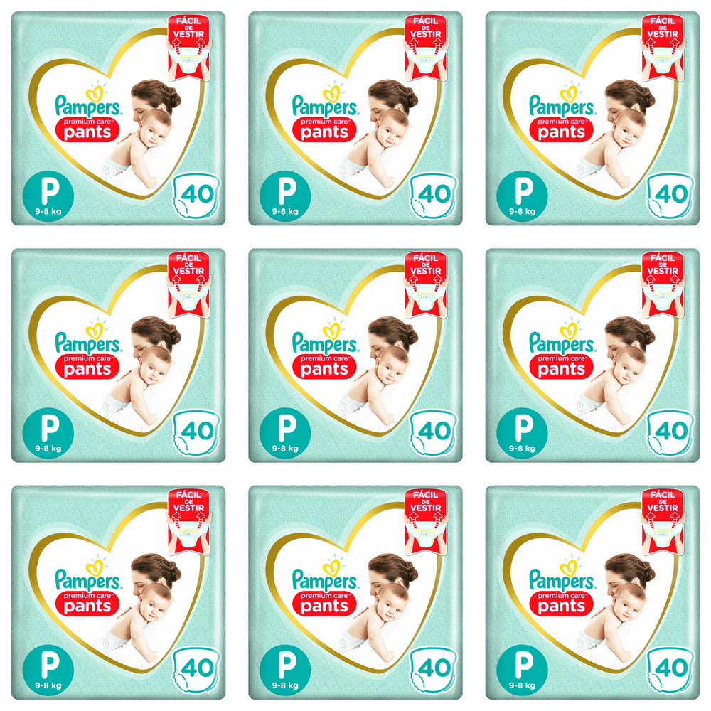 Kit 9 Fraldas Pampers Pants P.Care Mega P c/40 Unidades