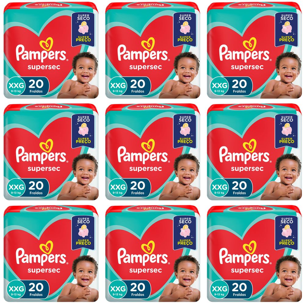 Kit 9 Fraldas Supersec ”Xxg” Pampers c/20 Unidades cada