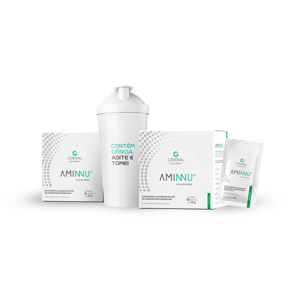 O Kit AMINNU® Sem Xilitol 10g - 30 sachês - 2 unidades + Coqueteleira é composto por:2 AMINNU® Sem Xilitol (Sabor a escolher)1 COQUETELEIRAA EVOLUÇÃO DA SÍNTESE PROTEICAFormulação inovadoraO AMINNU® é uma combinação específica, na proporção adequada, de aminoácidos essenciais para otimização da síntese proteica no corpo humano.Os aminoácidos essenciais são importantes para o funcionamento do nosso corpo, pois são os blocos de construção fundamentais para a síntese proteica (processo de formação de novas proteínas musculares). e têm diversas funções biológicas, como a participação na formação de tecidos.O corpo é capaz de utilizar os aminoácidos de forma mais eficaz, uma vez que eles já estão prontos para serem absorvidos e não precisam passar pela etapa de quebra.Aminoácidos na forma pura têm a vantagem de serem rapidamente absorvidos pelo organismo, permitindo a otimização da síntese de proteínas. Isso é particularmente importante para aqueles que buscam construir massa muscular, melhorando a recuperação após exercícios físicos e o desempenho físico.Portanto, a síntese proteica otimizada com aminoácidos essenciais refere-se à capacidade do organismo de produzir proteínas de forma mais eficiente quando recebe uma quantidade adequada de aminoácidos essenciais.Os aminoácidos são importantes para a manutenção de várias estruturas do organismo, como tecidos conjuntivos e estruturais (músculos, ossos e cartilagens), pele e cabelos. Aminoácidos essenciais são aqueles que não podem ser sintetizados pelo organismo e devem ser obtidos por meio da dieta ou suplementação.Força e desempenhoO AMINNU® é frequentemente escolhido por pessoas interessadas em suporte ao desenvolvimento muscular, manutenção da massa magra e recuperação após exercícios físicos.Múltiplos benefíciosO suplemento é também procurado por indivíduos interessados em manter uma boa condição física. Em idosos, por exemplo, a suplementação com aminoácidos pode ser considerada em conjunto com orientação de um médico ou nutricionista. É importante consultar um profissional de saúde para avaliar a necessidade de suplementação em sua dieta.Saúde e longevidadeO AMINNU® não é um tratamento para condições médicas, mas algumas pessoas optam por incluí-lo em sua alimentação como um apoio ao bem-estar geral. Consulte sempre um médico ou nutricionista antes de iniciar qualquer suplementação.BENEFÍCIOS DOS AMINOÁCIDOS ESSENCIAIS:L-leucina: Conhecida por seu papel na síntese proteica.L-valina: Participa de processos energéticos.L-isoleucina: Encontrada principalmente em proteínas e enzimas.L-lisina: Associada com a biossíntese de determinadas substâncias no organismo.L-fenilalanina: Participa na produção de neurotransmissores.L-treonina: Conhecida por sua influência na absorção de nutrientes.L-metionina: Importante para a produção de antioxidantes.L-triptofano: Precursor de neurotransmissores importantes.DescricaoLeveMaisUnidades: Disponibiliza os 8 aminoácidos essenciais em sua forma livre, prontos para serem absorvidos e utilizados pelo organismo, superando as barreiras digestivas.;