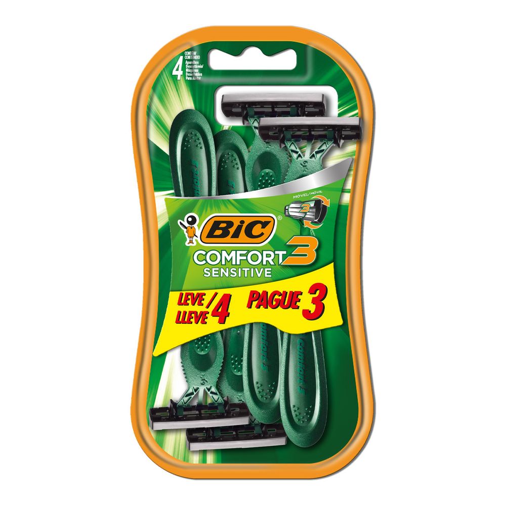 Barbeador Bic Comfort 3 Advance Sensitive 4 Unidades