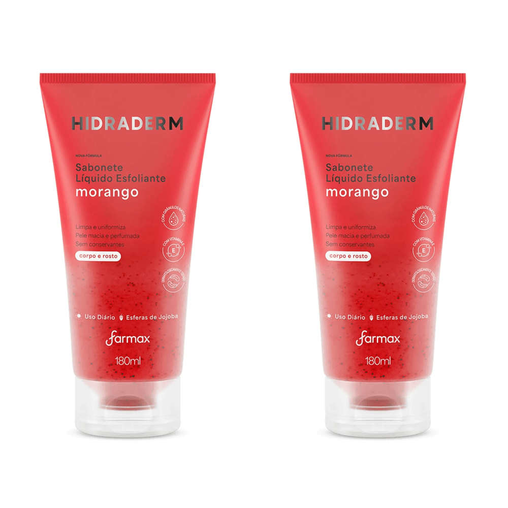 Kit c/2 Sabonetes Liquido Esfoliante Morango Hidraderm 180ml