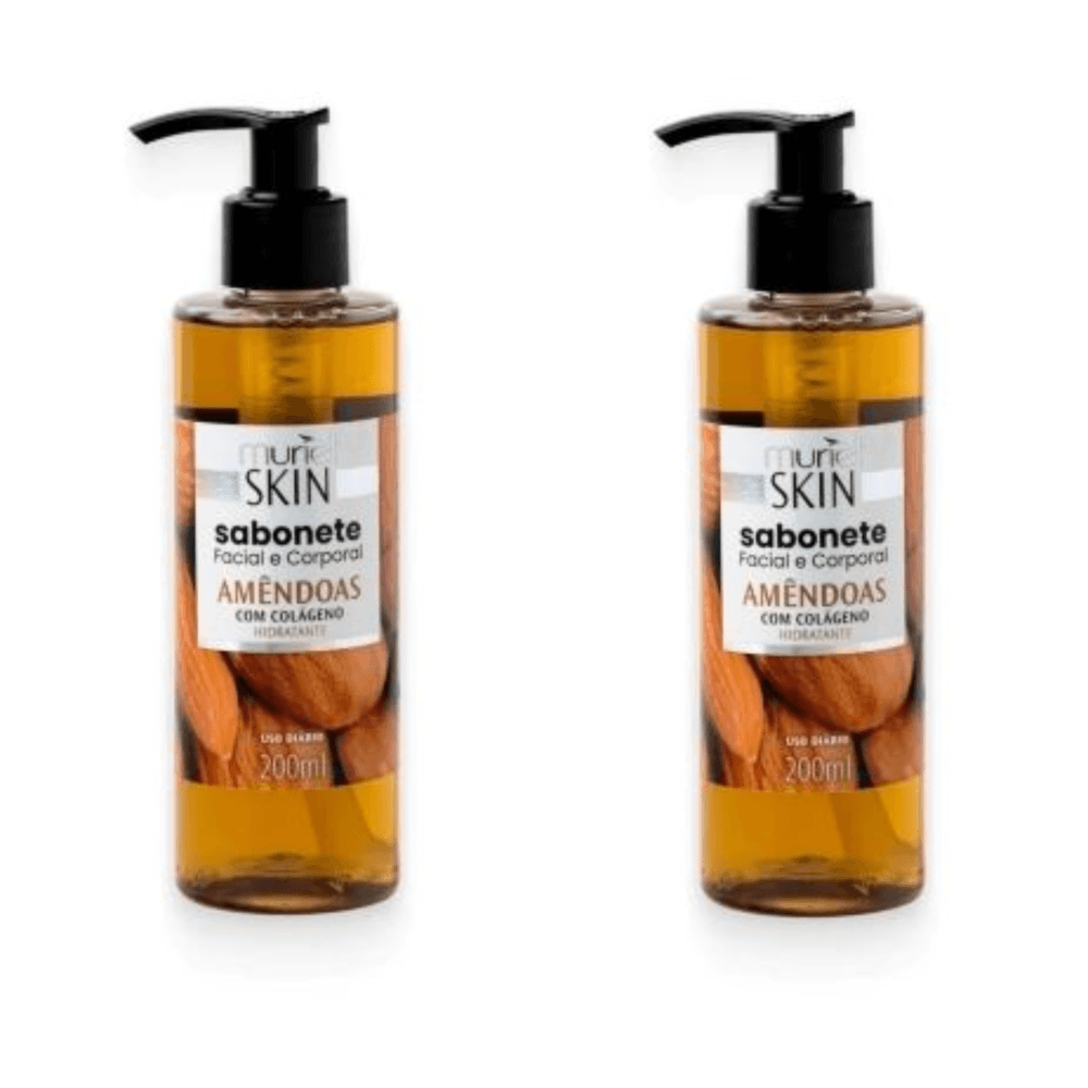 Kit c/2 Sabonetes Liquido Facial Corporal Muriel Amendoas e Colágeno 200ml