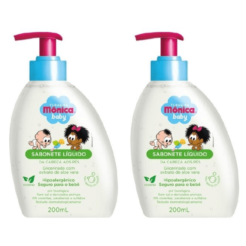 Kit c/2 Sabonetes Liquido Infantil Turma Da Mônica 200ml Glicerinado Com Aloe Vera