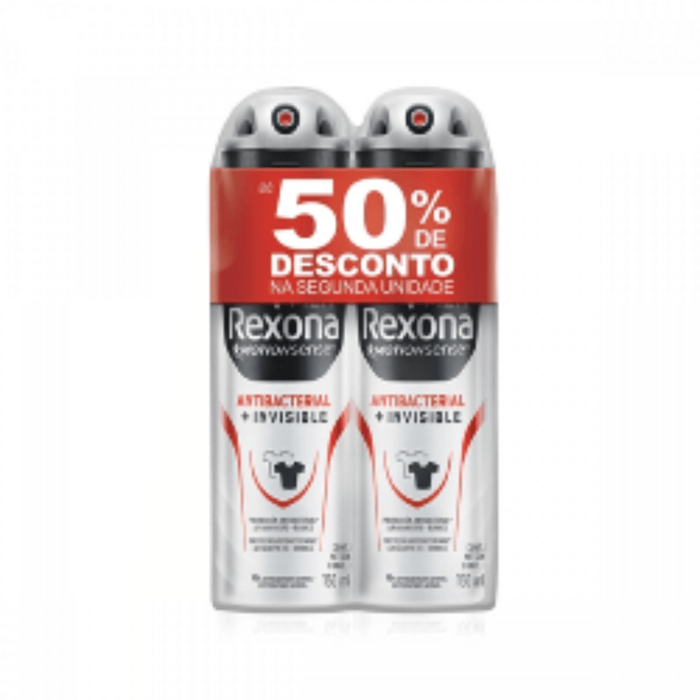 Kit c/2 Unidades de Desodorante Aerosol Rexona Masculino 90g Antibacteriano Invisible