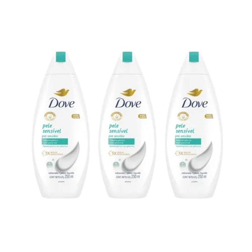 Kit c/3 Sabonetes Líquido Dove 250ml Pele Sensivel
