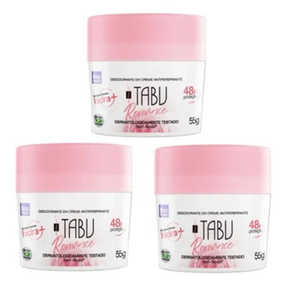 Kit c/3 Unidades de Desodorante Creme Tabu 55g Romance