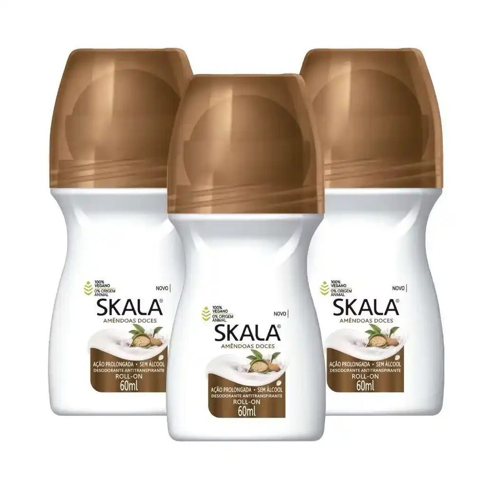 Kit c/3 Unidades de Desodorante Rollon Skala 60ml Amêndoas Doces