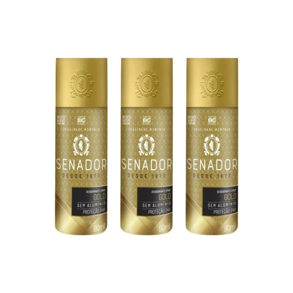 Kit c/3 Unidades de Desodorante Spray Senador 90ml Sport/Gold