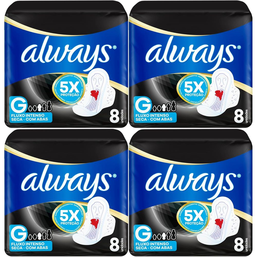 Kit c/4 Absorvente Cobertura Seca Noturno Com Abas Always Simples 8 Unidades