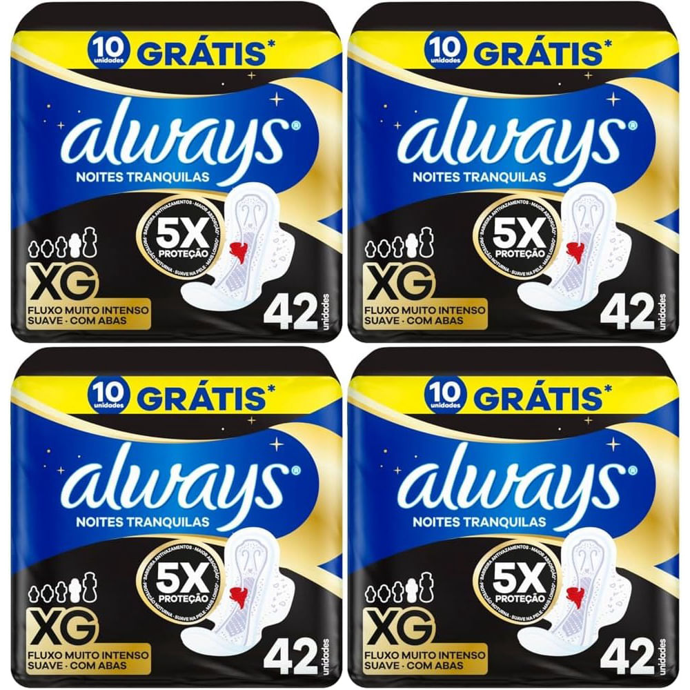 Kit c/4 Absorvente Com Abas Suave Always Noites Tranquilas Xg Pacote 42 Unidades