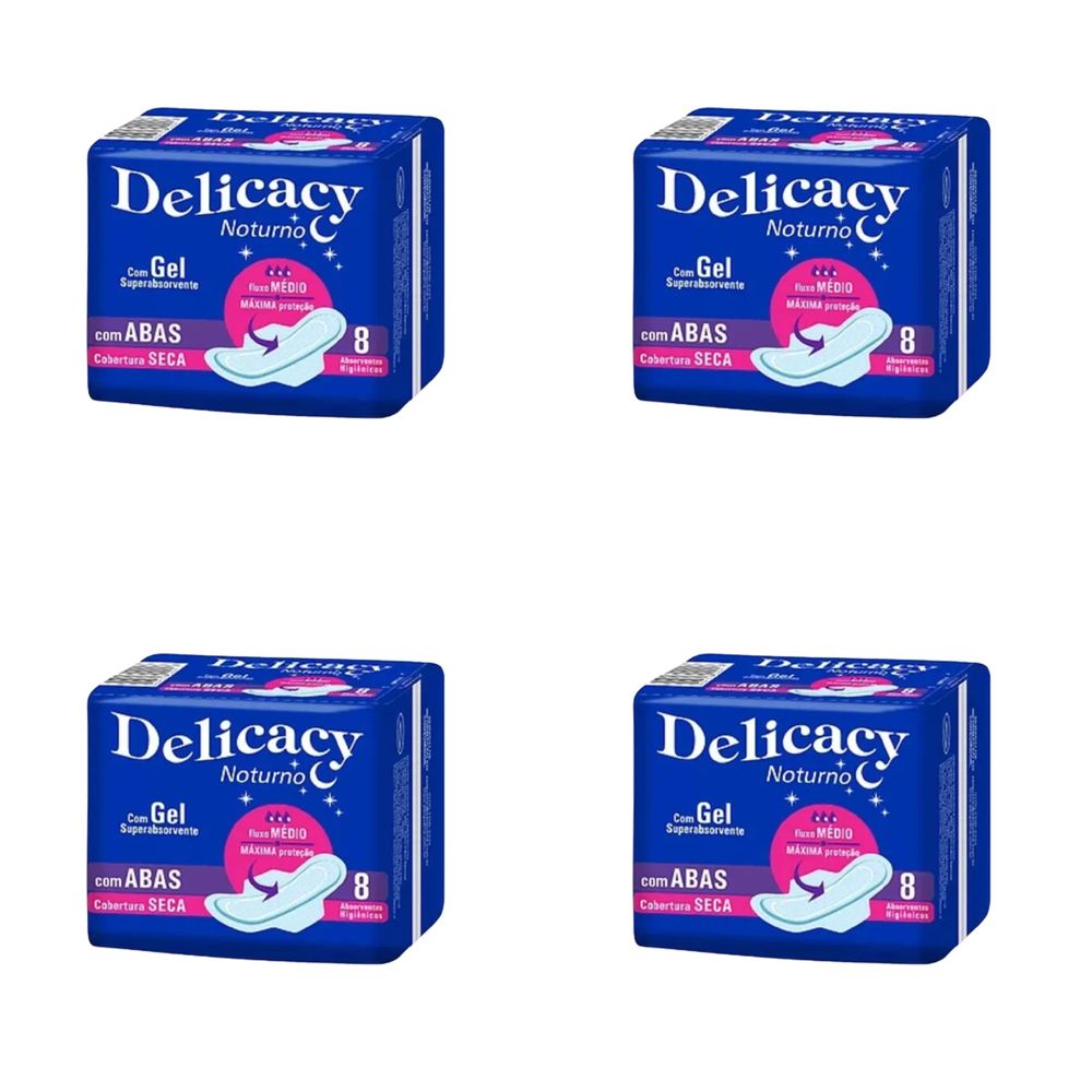 Kit c/4 Absorvente Delicacy Noturno C/Abas Cobertura Seca C/8 Unidades