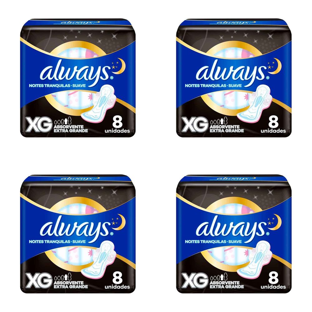 Kit c/4 Absorventes Always Básico Suave XG Com Abas Com 8 Unidades