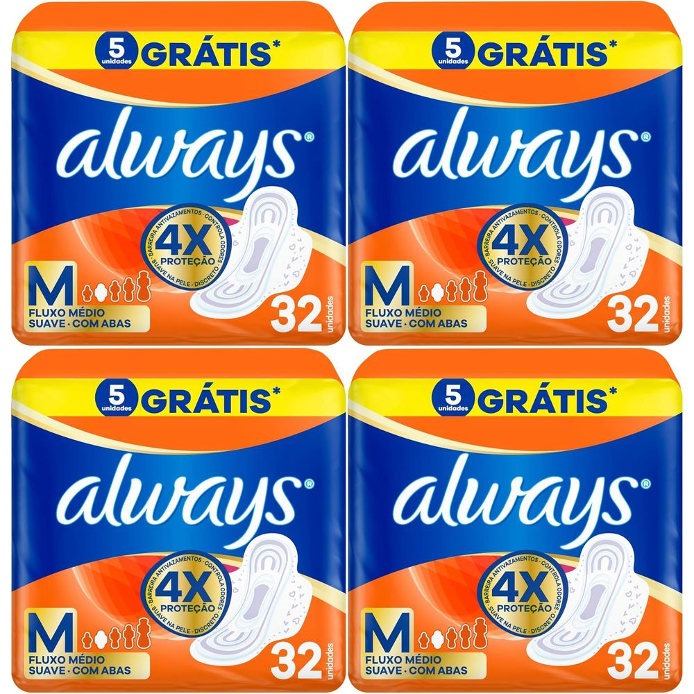 Kit c/4 Absorventes Always Pink Suave Com Aba 32 Unidades cada