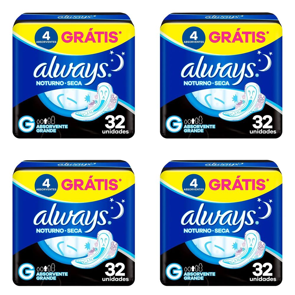 Kit c/4 Absorventes Cobertura Seca Noturno Com Abas Always Simples c/32 Unidades cada
